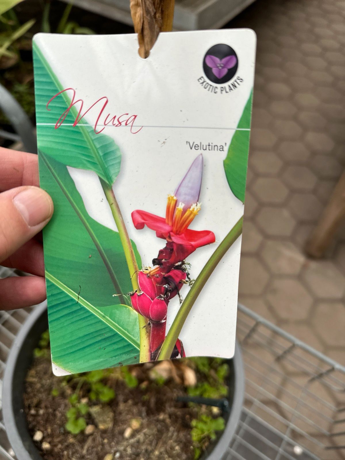 - 1× Bananenstaude (Musa velutina), 90–120 cm (inkl. Topf), im Kulturtopf
