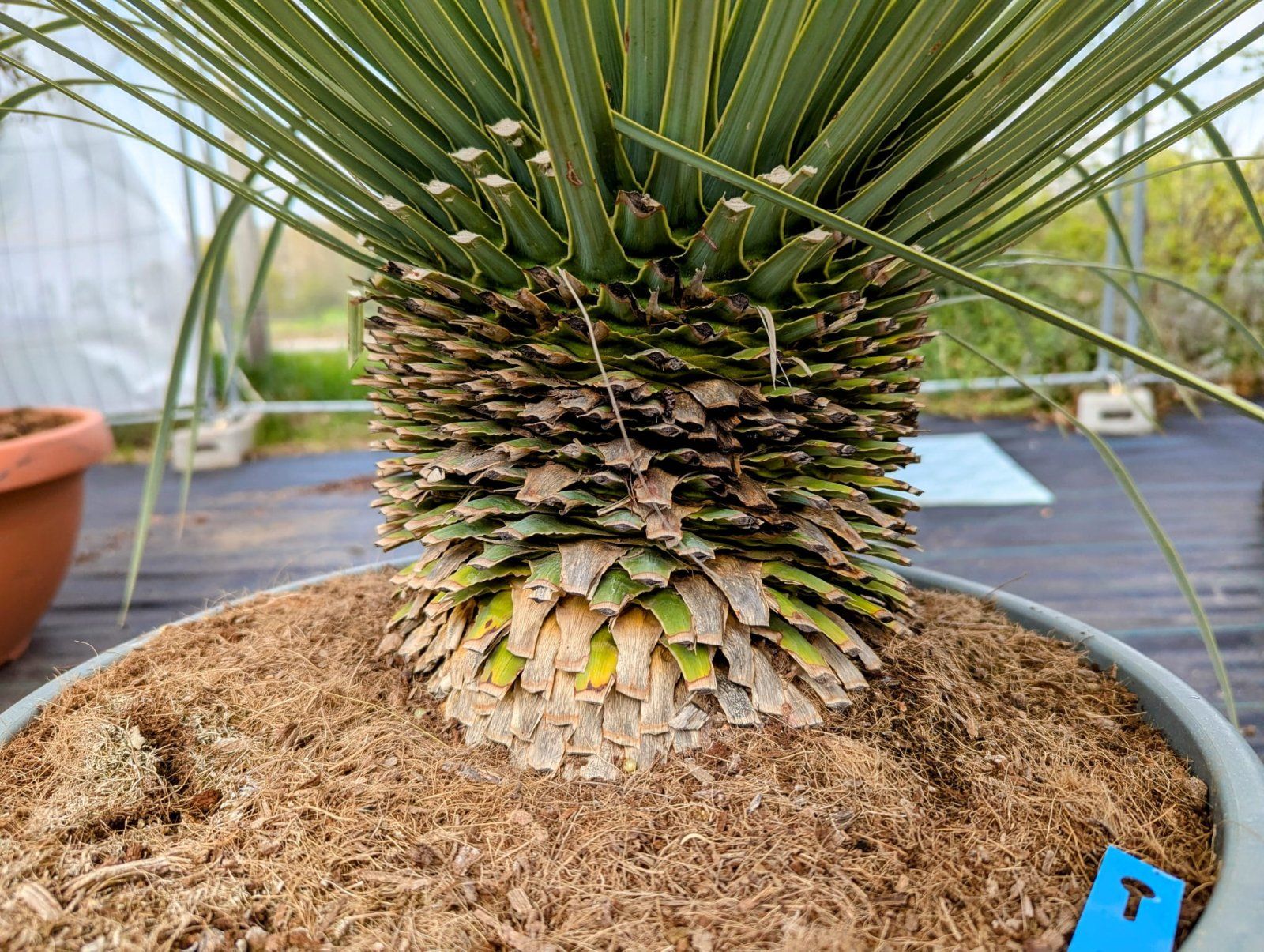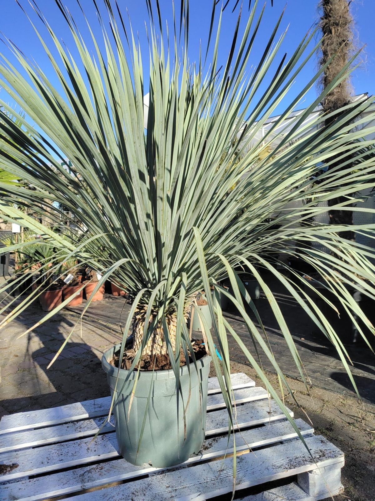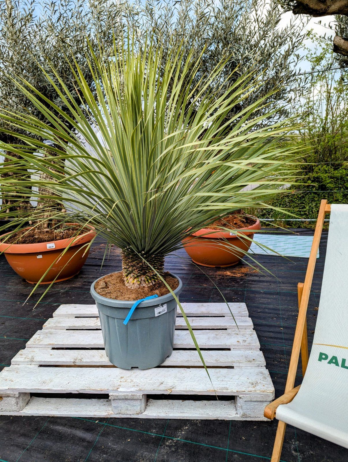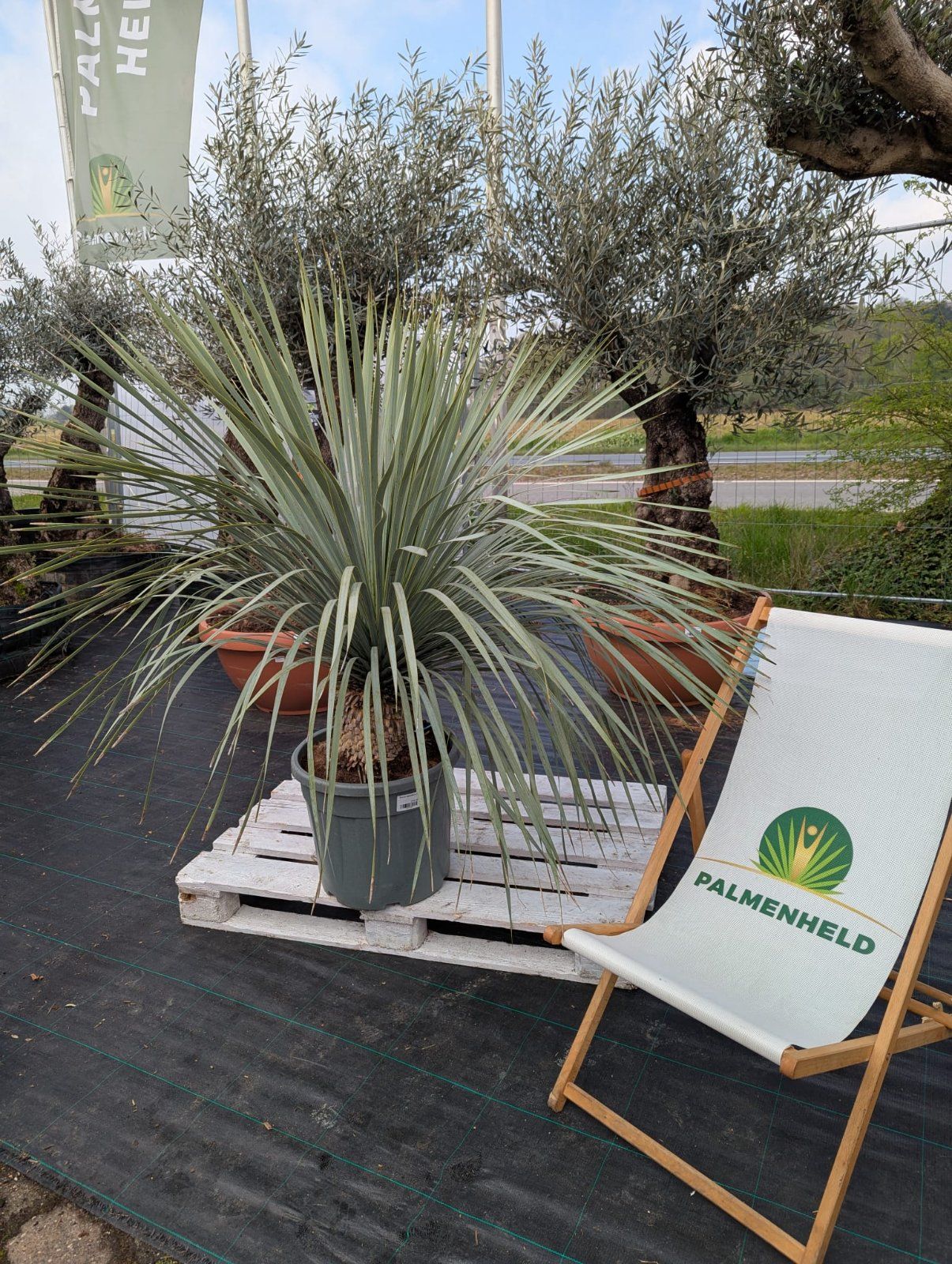 - 1× Blaue Palmlilie (Yucca rostrata), 100–140 cm (inkl. Topf), Stamm ca. 20–40 cm
