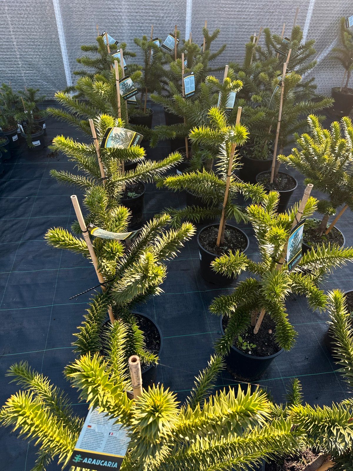Exotischer, immergrüner Nadelbaum mit urzeitlicher Anmutung und perfekter Symmetrie – ideal als Solitär für Garten & große Kübel. Lieferhöhe 80–90 cm (inkl. Topf).