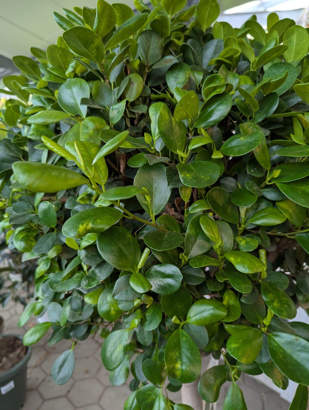 Elegante, immergrüne Zimmerpflanze mit kompaktem, buschigem Wuchs und dicht glänzendem Laub – ideal für Wohnräume, Büro und Wintergarten. Lieferhöhe 180–210 cm (inkl. Topf).