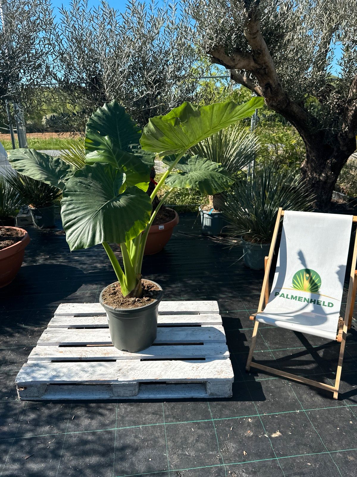 - 1× Elefantenohr (Alocasia macrorrhiza), 120–160 cm (inkl. Topf)
