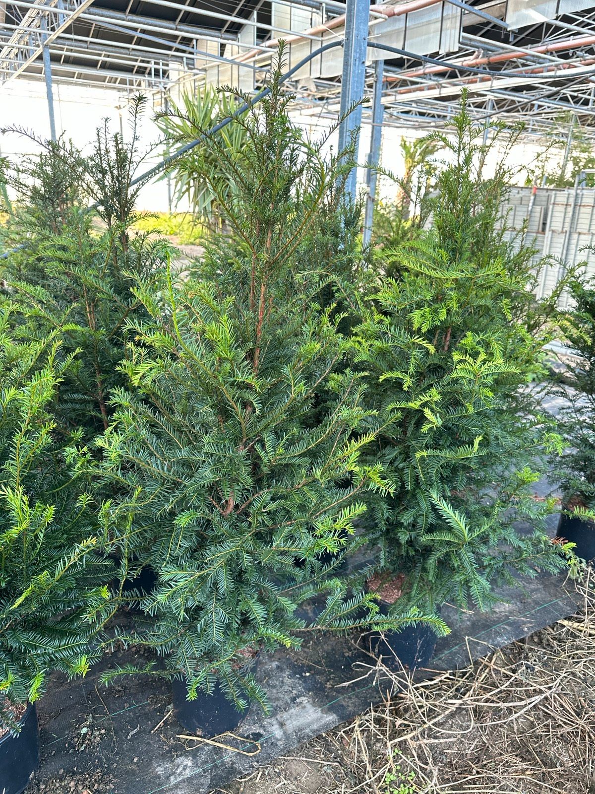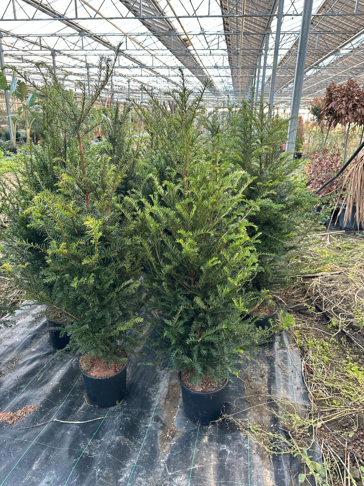 Immergrüne, dicht verzweigte Eibe mit weichen, dunkelgrünen Nadeln und hervorragender Schnittverträglichkeit. Das angebotene Exemplar hat eine Lieferhöhe von 150–180 cm (inkl. Topf) und eignet sich ideal für formale Hecken, natürlichen Sichtschutz oder als markanten Solitär.