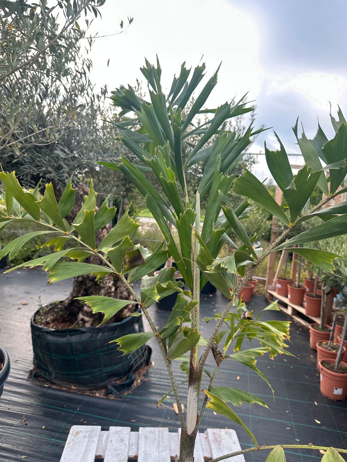 - Wuchsform: schlanker Einzelstamm, kompakte Krone mit fein gefiederten Wedeln