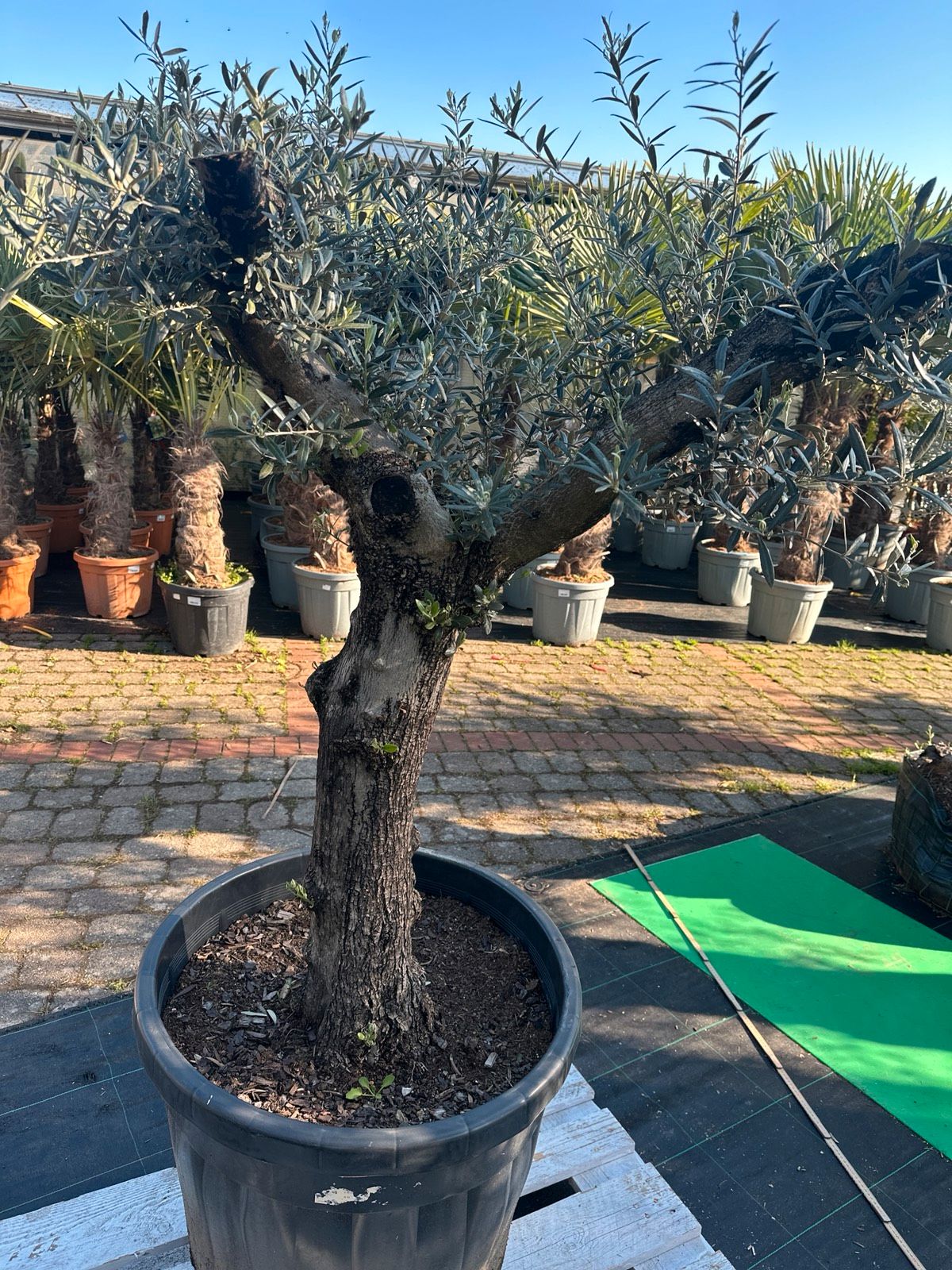 Mediterranes Flair für Garten, Terrasse oder Eingang – mit charakteristischem, knorrigem Stamm als edler Solitär. Kräftiges Exemplar für Struktur und Stil. Lieferhöhe 180–250 cm (inkl. Topf).