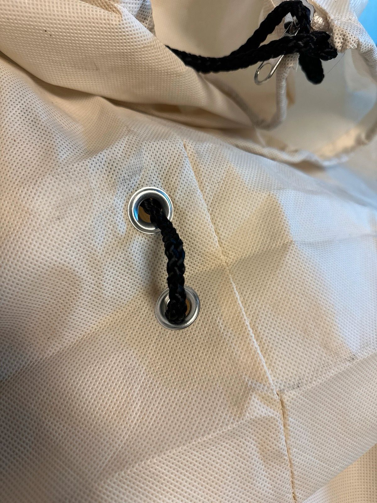 - Anbringen: Krone locker bündeln, Haube überstülpen, unten festziehen.